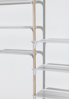 Forest ist ein Regal, welches sich den ästhetischen und konstruktiven Prinzipien einer Pflanze bedient. Die Böden aus Blech wachsen organisch wie Blätter zu einer stabilen Fläche und versteifen dadurch das gesamte Regalsystem. Diese biomorphe Struktur ist reduziert und ökonomisch - eine außergewöhnliche Form die Materialersparnis mit Stabilität vereint. Man kann es leicht ausbauen, variable gestalten und erweitern.