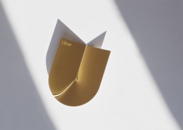 Uber, das über seine mobile App Mitfahrgelegenheiten anbietet und schätzungsweise 110 Millionen Nutzer weltweit hat, hat zum ersten Mal in Berlin eine Auszeichnung vergeben, die wir entwerfen durften. Mit unserem Entwurf für den Uber Award stellten wir sowohl ein »U« dar, das die Initiale von Uber symbolisiert, als auch eine Kurve, die eine Straße darstellt. Eine einfache Biegung in einem goldenen Blech erzeugt ein vielschichtiges, dreidimensionales Objekt.